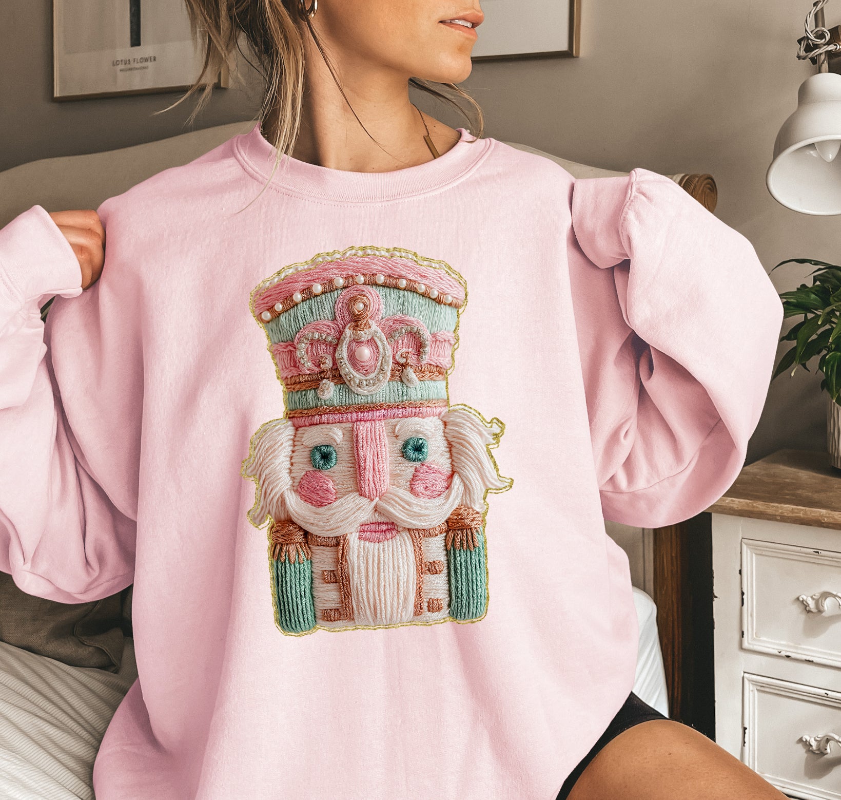 Step into the holiday season with charm and sophistication. Our French Knot Nutcracker Crewneck looks like a hand-embroidered masterpiece — but it’s actually a luxuriously smooth, direct-to-garment print. The design captures the stunning texture and detail of delicate yarn embroidery, from soft pinks and mint greens to glints of gold that make it feel straight out of a storybook.